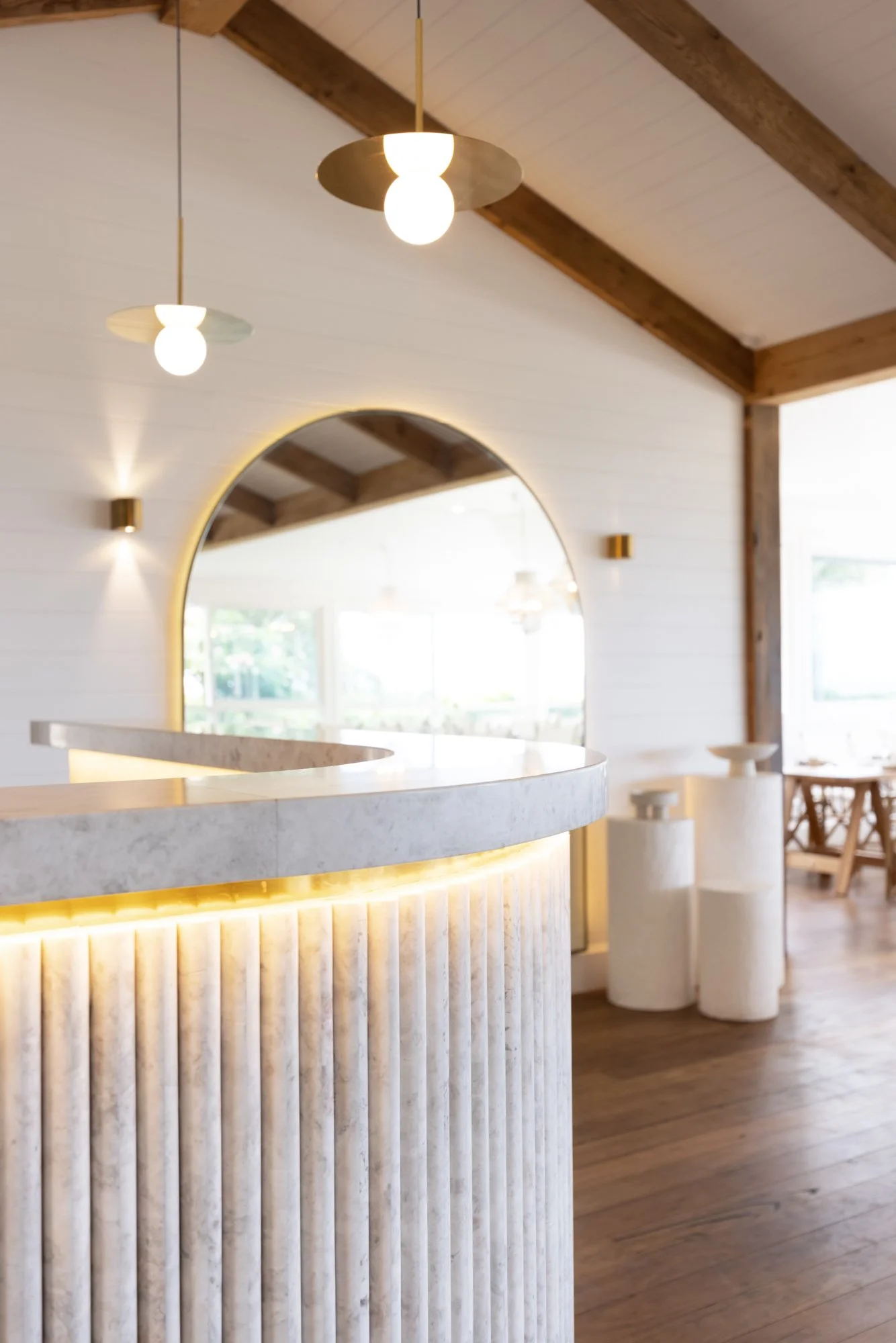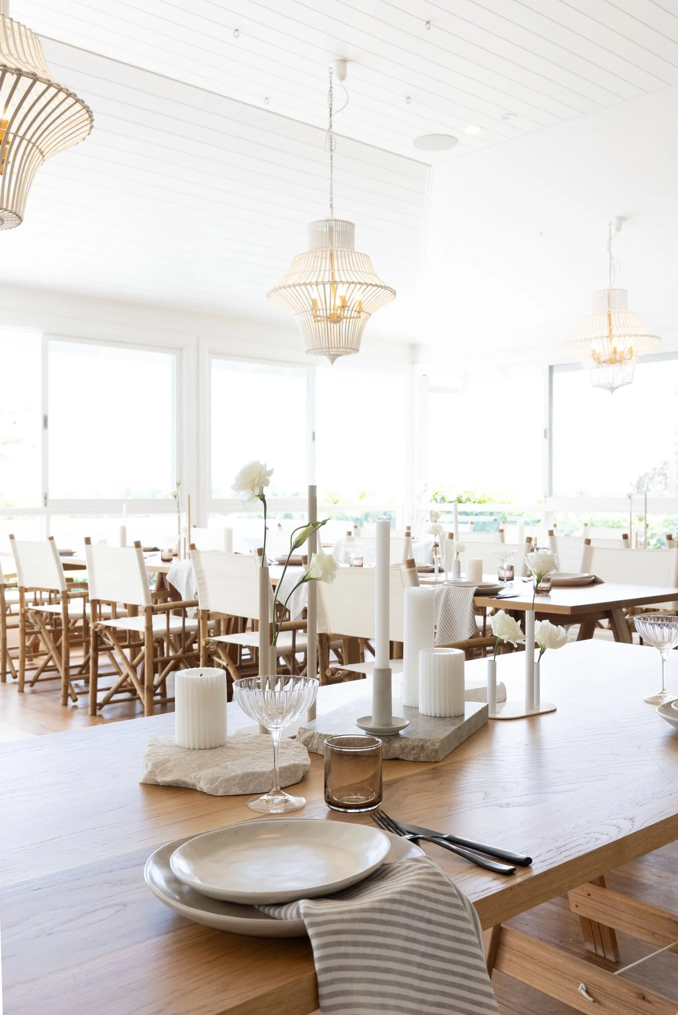 In keeping with the cottage style of the original farmhouse, we used reclaimed timbers, both internally and externally. The previously renovated outdoor gazebo area remained intact after the fire and needed to flow through to the rebuild of the restaurant. As both a wedding venue and restaurant, the space needed to be functional for both uses, as well as being a neutral but beautiful space to suit wedding styling of different aesthetics.