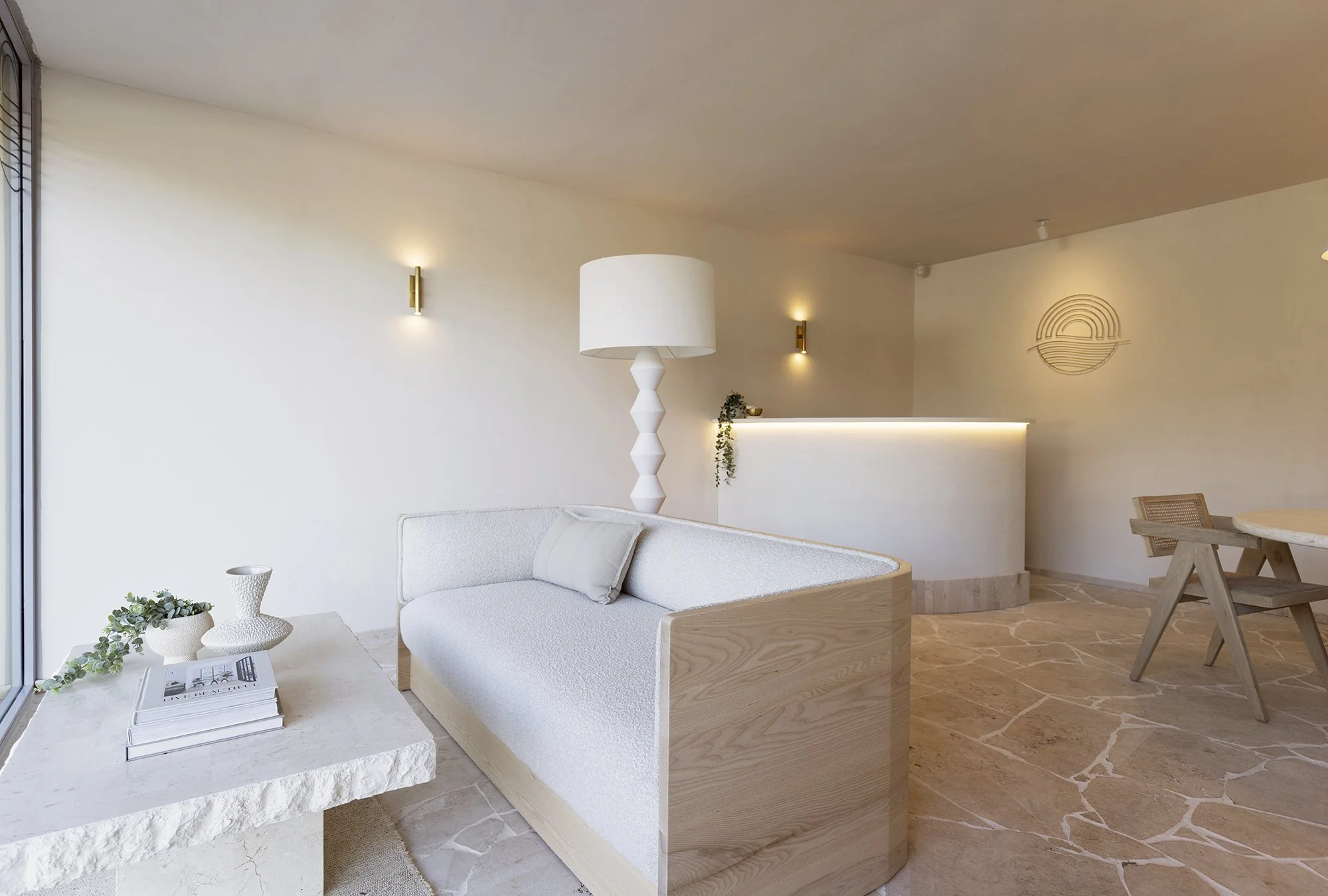 The brief was to create a high-end reception and client meeting area. Feminine, warm and stylish.