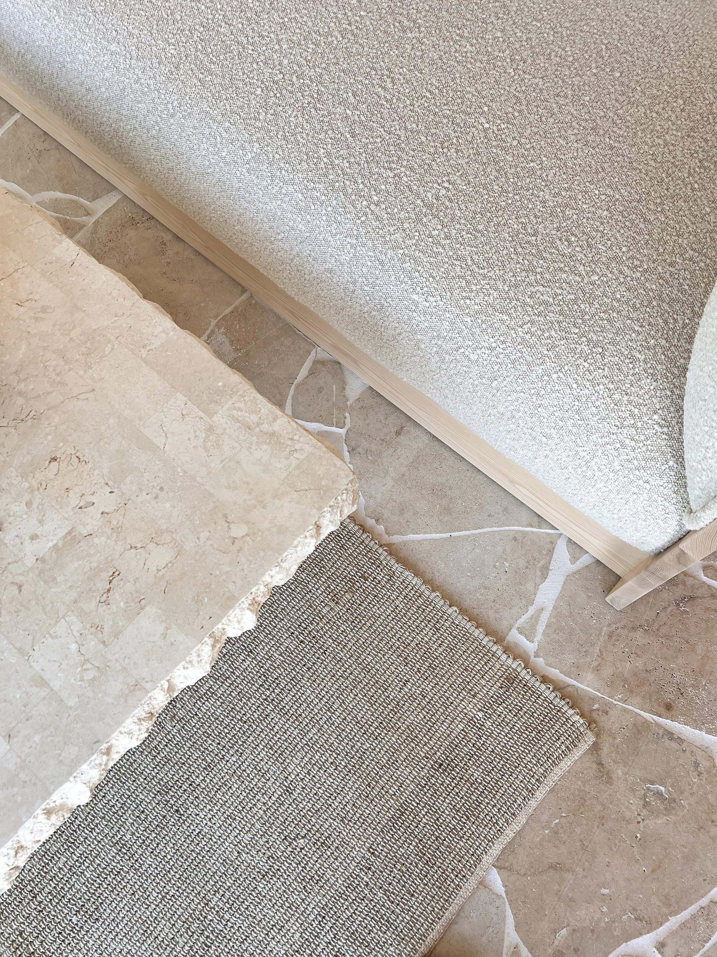 Creamy textured plastered walls, neutral tones and soft lighting.